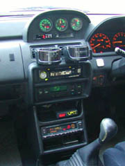 コンソールにはパーソナル無線、DSP、ターボタイマー、そしてハイブーストスイッチを装備。赤く光っているのがハイブーストオン状態。