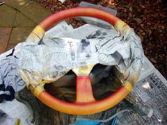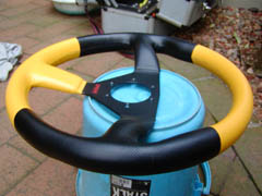 トゥデイですでに実績のあったステアリングのリフレッシュ。今回はリーザについてる赤のATCスプリントをボディカラーに合わせて黄色にしてみました。カーショップで見つけたインテリアカラーという内装専用のスプレーを使用。もとが中古で入手した色あせた赤。赤色の上に黄色を塗って色がちゃんと出るか心配でしたが、問題なく完了。今回はグリップ部分も一部革がはげていたのでそこも黒色で再塗装。現在すでに入手できない新品同様のイエローATCスプリントのできあがりです。詳細はトゥデイのリフレッシュレポートを参照してください。【2004.04.11】