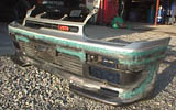 ウレタンバンパーにFRPで自作エアロをパテで埋めたのが1993年。気づけば8年も経ってしまった。ウレタンとFRPの相性が合わないので予測はしてましたが、すでに境目にヒビが大きく発生。発生箇所はすべてはぎとってファイバーパテ(グラスファイバー入りのパテ)をつかって再度整形。また数年たつと割れる可能性があるので、両サイドには2本ずつリベットを追加。今回はツートンカラーをやめるのでついでにキャラクターラインもパテ埋め。
