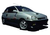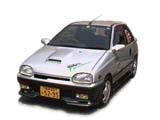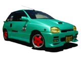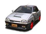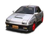 もとの写真をフォトレタッチソフトで着色しました。左のCGでは原画像のガンメタの部分の色をうすくしてツートンカラーの色の差をなくして着色。ツートンであった画像をそうでないように見せるのはちょっとむずかしいです。また、ヘッドライトにはイエローバルブを、ホイールはリムがシルバーで内側だけ赤色にしてみました。