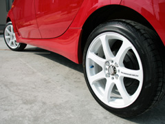 今回選択したタイヤとホイールは以下のとおり。さすがに4輪ともに2cmのサイズアップだと強力なグリップ力です。偏平タイヤの剛性アップによりロールもだいぶ減っているようです。【2008.4.20】