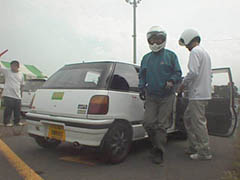 ぎりぎりで登場した吉田さんは長谷川さんのchachaでダブルエントリー。なんとゼッケンナンバーは2番。というわけですぐに出番が回ってきました。続いて23番の長谷川さんにそのままドライバーチェンジ。(左の写真)