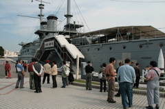 さっそく、戦艦「みかさ」に搭乗!(といっても、港に停泊しているように見えますが、コンクリートでしっかりと接岸されています。雰囲気だけはばっちり。)