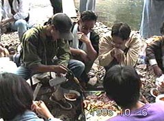 午後からまた魚が放流され、みなさん釣り場へ再チャレンジ!どうやら放流直後は快調で、一人、二人と釣れはじめ、当たりが出てきました。私も調子に乗って一匹つり上げたのですが、ここはフェアプレー精神でキャッチ&リリースしました(え?逃げられたって??グスンッ)。