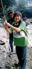 さて、マス釣り場に入ると人の多いこと多いこと。釣竿を手にした人はすぐにマス釣りにチャレンジ!しかーし、なかなか手応えの来た人が出てきません。「餌がすぐ取れちゃう」なんて餌のせいにしてる人も・・・。どうやら午前中に放流したお魚さんはもうおなか一杯になってしまったようでした。