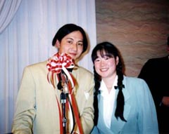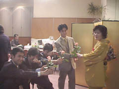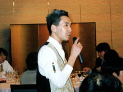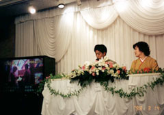ちょっと遅れ気味でスタート。劇団に所属するミュージカルアクターの竹内さんによる司会は期待通りのノリでした。はじめは緊張しましたが、徐々に楽しさのあまり気づいたら緊張も忘れていました。お祝いの言葉、スライドによる挙式、ハネムーンの紹介と時間はどんどん過ぎて、目の前のおいしそうな食事も手を着ける暇もなく、後半へ。クイズを終えるとやっぱりスケジュールどおりには行かないもので、予定していたカラオケはカットとなってしまいました。お願いしていたHONDAの石田さん、K's Projectの梶川さん、ごめんなさい。またチャンスがあったら聞かせてください。