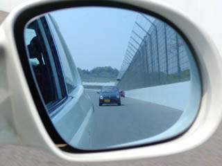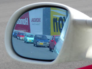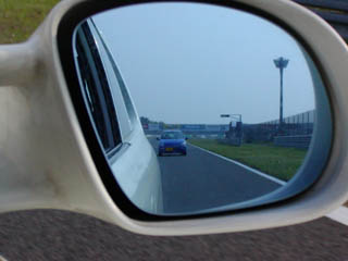 最初の写真がスタート直後の写真。ドアミラーに映るトゥデイとストックカー。なんて異色な組み合わせ。続いて映っているのが後ろを走っていたタキさんのJA4。アウトぎりぎりを疾走!?
