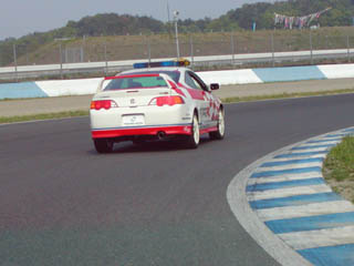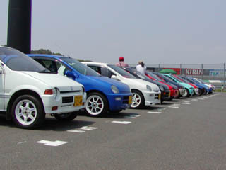 15:00より今度はロードコースにてパレードランが行われました。今度は順番が変わってt-kondoのトゥデイタイプRが先頭。オフィシャルのインテRに食いついて走行。次の写真は後ろを走る山本さんのJA4。実はここでデジカメの電池切れ。といっても写真を撮ってる余裕もなくなりました。パレードランとは名前だけのほとんど全開走行。オフィシャルのインテRが流している後ろではアクセル全開のトゥデイが楽しそうに走っていたのでした。いやーほんと楽しかったです。