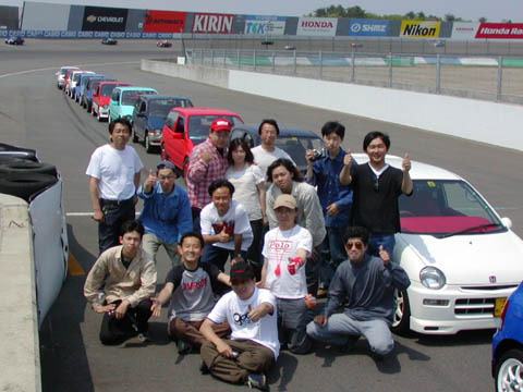MTTメンバーもコースインしました。ピットロードで全車停止。この間まったりと時間があったので記念撮影。コースの中で集合写真が撮れるとは思ってもみませんでした。