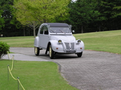 また、コレクションホールの中庭ではウィークエンド・ランというイベントがあり、本日はシトロエン2CVとN360が走行して見せてくれました。写真は2CVです。とってもスローな走行なんですが、しっかりロールしていました。