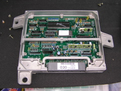 実はわたしのトゥデイ、最近エンジンチェックランプが点灯します。特徴は・・・。点いたり消えたり。ときには半分くらいのときも。システム上、半分という状態は存在しないので、センサー異常というよりもコンピューターの異常じゃないか?ということで、さかもとさん所有のノーマルビートECUに入れ替えてみると、チェックランプつきません。正常です。ということで、ECUの異常らしい。さらにふたをあけてみると・・・。写真の中央部にコゲたような箇所がある。予備のECUをゲットして置いた方がいいかも。みなさんご協力ありがとうございました。おかげで原因究明完了です。【2008.09.21】