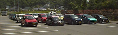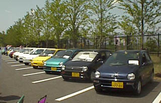 これがMTT会場である第7駐車場。なんと貸し切り。1列目の先頭4台が我々スタッフのトゥデイです。以下ずらーっと18台のトゥデイ、トゥデイ、トゥデイが並びました。