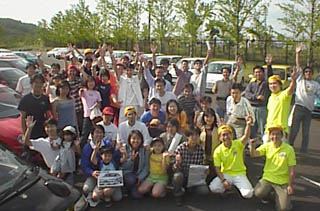 パレードランも終わってみんなで記念撮影。この写真はKスペ、KCストリート共に掲載されることでしょう。右側に見える黄色いポロシャツを着ているのが今回のスタッフ近藤、TAO、たあむうさんです。タキさんはカメラマン。鮮やかなMTTスタッフポロシャツ気に入りました。デザインBOXさんありがとうございました。総勢45名くらいだったかな?
