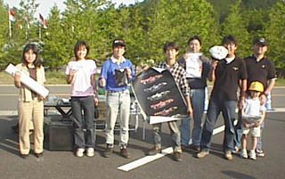 最後にもちよってもらった賞品をジャンケン大会でみなさんに提供。KIDS-Rからトレーナー、Tシャツ、HALFWAYからはステッカー、その他、プラモデル、ポスターなどなど。ゲットしたのは写真のみなさんです。おめでとうございます。