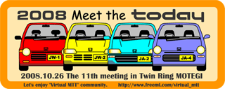 MTT11記念ステッカー今回はオレンジ仕様で行きます。誠に申し訳有りませんが、今回は開催日までの準備期間が短いため、大、小の希望調査を行う時間が取れません。よって、発注は小のみとし、参加者ひとりに1枚プレゼントという形式をとります。余り分については当日販売とします。【2008.9.21】 ステッカーが納入されました。ちょっとオレンジが冴えない色なんですが、まあよしとしましょう。【2008.10.12】
