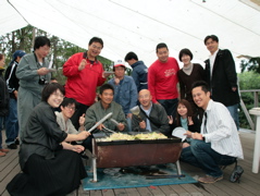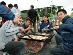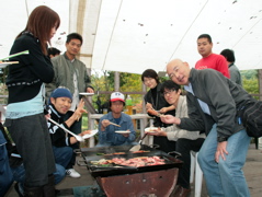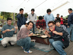 そしてこちらは、奥のグループ。一番にお肉を一気に片づけ、さっそくやきそばに突入です。誰も競争していたわけじゃありませんが・・・。