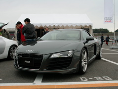 BBQでおなかいっぱいになった後、我々もネコパブイベントの見学に足を運びました。メインスタンドから、パドック内に入るとずらっとレーシングカーや、旧車やスーパーカーなどが並んでいました。あまり時間がとれませんでしたが、個人的にはAudiのブースで、R8がまじまじと目の前で見れたのは感激。モーターショウで遠くから見たことしかありませんでした。かっちょいいです。