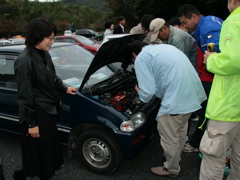 実は、最近kisaragiさんのJW2は不調だそうです。それを聞きつけたメンバーは、プラグのチェック、ディスビの清掃などを始めてしまい・・・。こんな状態になってしまいました。