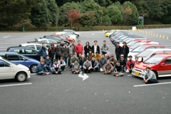 再び、ハローウッズの駐車場に戻り、記念撮影の準備。今回は向かい合わせに2列で整列。ずらっとトゥデイの顔が集まりました。圧巻ですね。