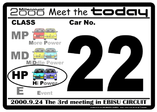 走行会メンバーにはA3で次のようなゼッケンを用意しました。走行しない方はEクラスとしてA4のゼッケンを配布。フロントウインド内側に置いてもらいました。