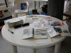 今回初の試みであるマニアグッズギャラリーを受付と同時に準備スタート。こちらはくらもとさんが中心でクラブハウス内の展示をやってもらいました。予想以上の充実した展示内容になって、みなさんのトゥデイマニア度の高さを改めて実感しました。