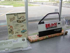 タキさんのカタログパネル、t-kondoのMTT関連資料、J'stipo、みやかわさんの逮捕カードアとその掲載雑誌、ポスター等、各種カタログ、D-IGAさんの逮捕ぬいぐるみコレクション、GENECIDEさんのFRPボンネット、ダーイシさんのJW1エアロバンパー、くらもとさんのJW1エンジン展示、モトさんのソレックスなどなど。