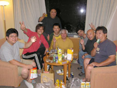 なんだおさんの部屋が犠牲となって、飲み会部屋に指定。21:00より飲み会に流れ込みました。途中ぽつぽつと消えていきましたが、最終的には25:30くらいまで続いていたそうです。(私は24:00頃にダウン。)