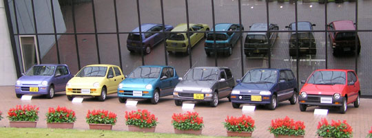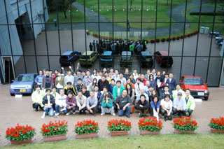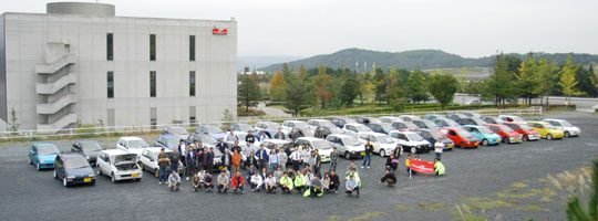 MTT8のもうひとつのビッグな企画はこの写真です。コレクションホールとのコラボレーションで実現した歴代トゥデイの集合写真。雑誌でおなじみのこの場所にJW1からJA4後期まで主要なラインナップがそろって展示できました。朝準備したときは小雨が降っていたので屋根下に展示を予定していましたが、午前中で雨があがったため、急遽この場所に移動しました。コレクションホールではJW1とJA4の2台が倉庫に保管されており、それ以外はメンバーの車を展示しました。展示車両は右から次のとおりです。