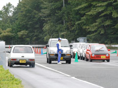 最初のイベントであるスリパリーコーナリング大会。アクティブセーフティパークにて開催されるショーとプログラムで4種類の低ミュー路をどれだけ早く走れるか体験するコースです。私を含めて9台が参加しました。