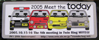 MTT8ステッカー今年はJW1誕生20周年ということで、デザインキャラクターをすべてJW1としました。オリジナルキャラクターに加えて、個性のある仕様をキャラクターとして加えました。(画像はクルマに貼った実際の写真です) ![]() デザイン:t-kondo | |