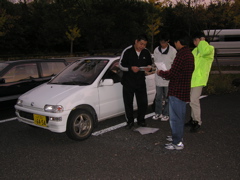 スキッドリカバリー体験を満喫した後、トゥデイの話題で暇つぶし。特に岩手からわざわざ日帰りで来てくれたわたなべさんのトゥデイに注目が集まりました。JA2にMTRECエンジンを搭載。さらにフロントにベンチレーテッドブレーキ、リヤディスクブレーキ化といういじりよう。さらには構造変更による改造車検まで通しているという強者でした。改造車検の苦労話等いろいろ聞かせて頂きました。