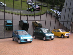 翌朝、8:30頃に宿を出発し、TRMのコレクションホールに入りました。若干小雨が残る状態だったので天気が心配でした。今年の会場はなんとコレクションホールの中庭。さっそく参加者のトゥデイを中庭に整列。また、コレクションホールからはJA4トゥデイとJA4ライフ。そして元祖360ccのライフの3台をミート・ザ・トゥデイのために展示して頂きました。