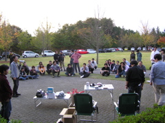 人気投票の結果から表彰式を実施しました。その後、恒例のジャンケン大会へ突入。みなさんから集まった賞品に加えて、前日の飲み会のお酒、おつまみまで賞品に化けてしまいました。ほとんどもらえなかったひとはないくらい集まりました。みなさんのご協力ありがとうございました。また来年お会いしましょう。