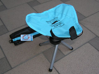 参加者全員にMTTオリジナルハンディチェアーをプレゼント。三脚のポータブルチェアーの中央にMTTロゴをプリントしました。色はブルー、オレンジ、グリーンの3色あります。ケース付きです。本日無事納品されました。【2006.10.22】 デザイン:t-kondo | |