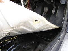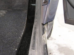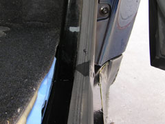 まずエアコンの水が室内に入ってるのか、外からの水が入ってくるのかわからなかったので、シャワーテストを実施。その結果、水の進入経路を発見しました。ウェザーストリップの下側でした(写真2枚目)。どうやらゴムのあたりが弱いみたいなので、2mmの厚みのゴム板を長めに張ってみました(写真3枚目)。これでシャワーテスト合格。フロアマットの水はタオルを詰め込んである程度、吸収しましたが乾くのには相当時間かかりそう。これで様子見ます。【2007.08.25】