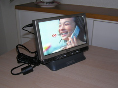 実はこの機種にはスタンドが付属してませんでした。そこで別機種のスタンドを購入。車載してないときは食卓のテレビで活躍中です。車載時のブラケットをつけたままでスタンドに設置できるので楽です。