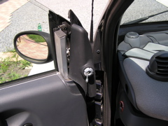 助手席のドアミラーが調整できなくなってしまいました。スマートは室内側で手動コントロールする機械的な調整機構があります。左右の角度調整が動かないため、この機構が問題のようです。