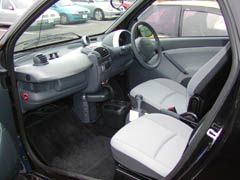 一見デザイン重視のシートに見えますが、営業マンからも「このシートは疲れないですよ」とお勧めしていた。写真のとおり、やけに助手席が後ろに位置します。これは側面衝突時に乗員同士がぶつかることを避けるためのレイアウトということです。また後方衝突に対しても、シートが簡単に変形しないよう背面には金属製のパネルで覆われています。衝突安全に対する考え方のレベルが高いですね。