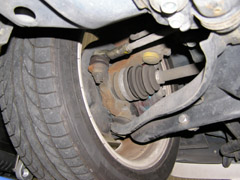 タイロッドのロックナットをゆるめて、SmartLinerのメーターを見ながら調整します。トーアウトからトーイン方向にするためにはタイロッドをのばしてやります。ねらい値を10'としました。08'あたりで調整して、ロックナットを締め付けるとその分の伸びで10'あたりになりました。