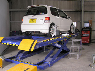 トゥデイのフロントタイヤは内側が偏摩耗してしまうという状況でいつかはアライメントを確認しようと思っていたのですが、今回juntohru宇都宮が移転に伴って4輪アライメントテスターが導入されてさらに、メーカースタッフによる講習会もあるということで参加してきました。講習会の後に、実際に4輪アライメントテスターを使わせてもらいました。測定した結果やはりローダウンした結果トーアウトになっていたので今回トーインに調整してきました。【2005.10.01】