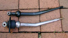 ひさびさにいじりました。この超寒い中。DA,DC系のC'sショートストロークシフトを流用し、装着しました。といっても完全ボルトON。ただしクルマの下にもぐらないといけないので予想以上に大変でした。このシフトは支点を移動してストロークを短くし、さらに純正のブッシュガイドの代わりにワッシャー&ベアリングを使うため遊びがなくなってカチッとシフトが決まるようになりました。非常に使いやすくなって満足満足。写真の上が純正。下がC'sです。【2003.01.05】