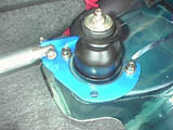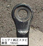 RBT-E10×2(ロッドエンドおねじテフロンタイプ)最初は純正のブラケット部に3mm厚のL字金具で方向をかえて装着。しかしジャッキアップ状態では問題なかったんですが、通常状態でロッドがねじれてNG。L字金具も耐久に問題があってダメでした。