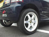 ホイール:VOLK TE-37 (14inch Offset 35)リーザに14インチを履いたときにはネオバの155/55R14を組みましたが、これではノーマルと同様の幅なのでグリップ不足でした。そこでトゥデイでは165を選定。サイズにも余裕があるので干渉もありませんでした。インプレッションとしてはタイヤが勝ってボディが負けているといった感じ。コーナーでの踏ん張りではノーマルとは世界が違います。次はタワーバーでボディを補強しないと。