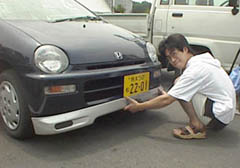 偶然入手した初期型ムーブ純正リップスポイラー。トゥデイに流用できるか疑問でしたが、合わせてみるとかなりラインが一致。これならカンタンに流用 できそうです。【1999.07.17】
