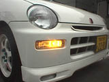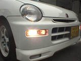 HIDヘッドランプにウインカーを移動したことで、ウインカー部をすべてフォグランプ化したいと思って形状の合うフォグランプを探してきました。そ こで見つかったのが日産エルグランドのうすべったいフォグランプ。かなり大きめですが、バンパーの内側に装着すれば問題なし。HIDヘッドライト加工前の 写真と並べてみました。レンズカットが古さを感じさせます。従来はフォグ内蔵ウインカーを使っていましたが、プロジェクター形式のHIDとマルチリフレク タのフォグランプのおかげでデザイン一新。最近のクルマと並んでも古さを感じないかっこよさをゲットできました。【2006.05.14】