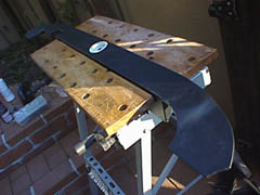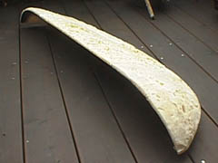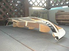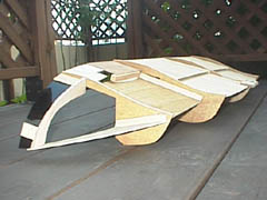メーターバイザー部は中央部の直線部分にはベニア板を敷き詰め、両サイドの曲面部には塩化ビニルの板を曲げてアウトラインを出しました。これでウレタン作業の準備完了。【2001.08.17】