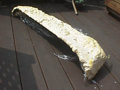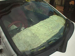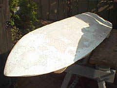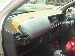 右の写真が荒削り後なんですが、カットしていくと大きな気泡がたくさんあって穴だらけの面になってしまいました。また発泡したためにダッシュボードに合わせたはずのラインも浮き上がってしまったので気泡の部分や隙間に新たにウレタンを流しこみました。【2001.08.25】