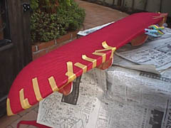 ウレタンフォームを思い通りに載せるのは一苦労。やはりベースの土台を作っておいて正解でした。これがないと形が全然決められません。あとけっこうたれるのでマスキングにも気をつかわないと大変です。【2001.08.19】