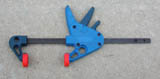 接着の際に便利なのがクランプです。右の写真はホームセンターで見つけたクランプです。間口が広いので活用範囲が広いです。接着剤をつけて接着されるまで固定しておくのに利用します。もちろん洗濯ばさみも十分活用できます。わたしの工具箱には庭で拾った洗濯ばさみがいくつも入ってます。