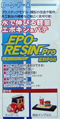 水で伸ばせる軽量エポキシ系パテです。紙粘土のような感じ。水をつけながら粘土細工のように形をつくることができます。硬化後にさくさくカッターで削れるので加工がやりやすいです。(右の画像参照)